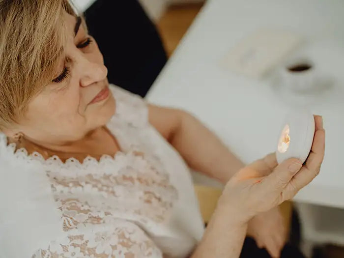 In herausfordernden Situationen oder nachts versuche ich schon seit langer Zeit, mich im ruhigen Atmen zu üben, leider ist es mir bisher nicht so richtig gelungen einen guten Rhythmus zu finden. Nun kann ich es, mit Hilfe des wunderschönen Herzlich. Es gibt mir die Taktung für eine ruhige Atmung vor und nach 10 Minuten ist Ruhe im Körper eingekehrt. Ich habe mein Herzlicht auf dem Nachtschränkchen liegen, könnte aber noch eins für den Schreibtisch und die Handtasche gebrauchen. 😉 Das goldene Licht ist wunderbar warm und wirkt wie Kerzenlicht. Einfach wunderschön und beruhigend. Danke dafür.