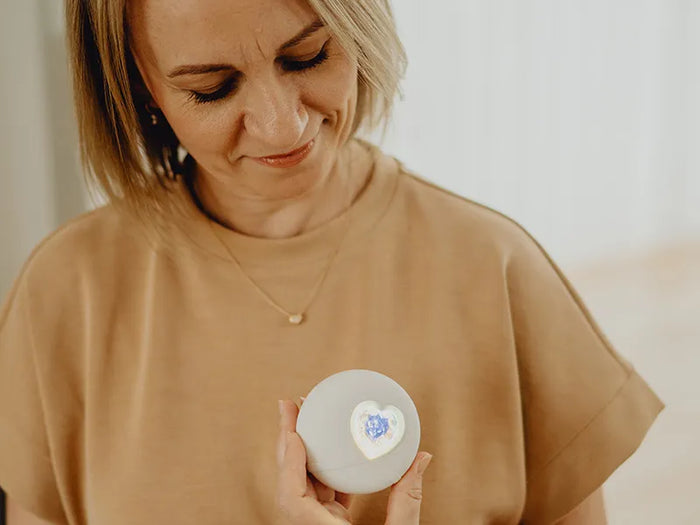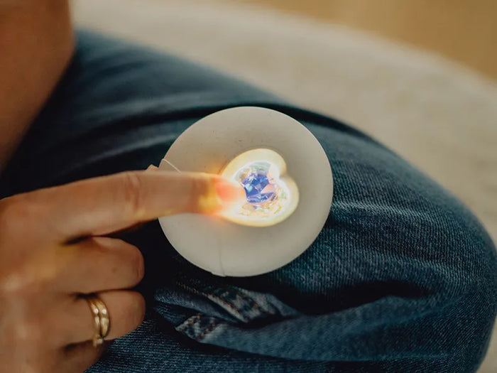 In herausfordernden Situationen oder nachts versuche ich schon seit langer Zeit, mich im ruhigen Atmen zu üben, leider ist es mir bisher nicht so richtig gelungen einen guten Rhythmus zu finden. Nun kann ich es, mit Hilfe des wunderschönen Herzlich. Es gibt mir die Taktung für eine ruhige Atmung vor und nach 10 Minuten ist Ruhe im Körper eingekehrt. Ich habe mein Herzlicht auf dem Nachtschränkchen liegen, könnte aber noch eins für den Schreibtisch und die Handtasche gebrauchen. 😉 Das goldene Licht ist wunderbar warm und wirkt wie Kerzenlicht. Einfach wunderschön und beruhigend. Danke dafür.